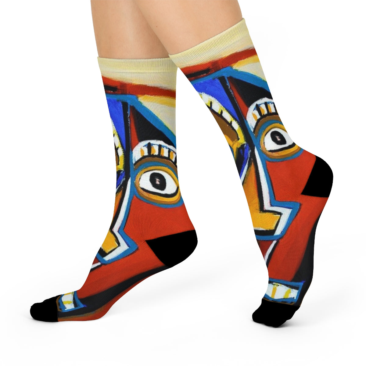 Direct-to-garment socks are a one-size-fits-all solution up to a men’s size 12. The base color is white with black on the toes and heel. The construction is 73% polyester, 18% nylon, 6% spandex, and 3% cotton. Add some foundational character with an all-over-print design; giving your customers a chance to style-up their footwear.