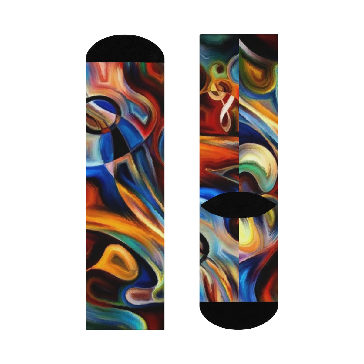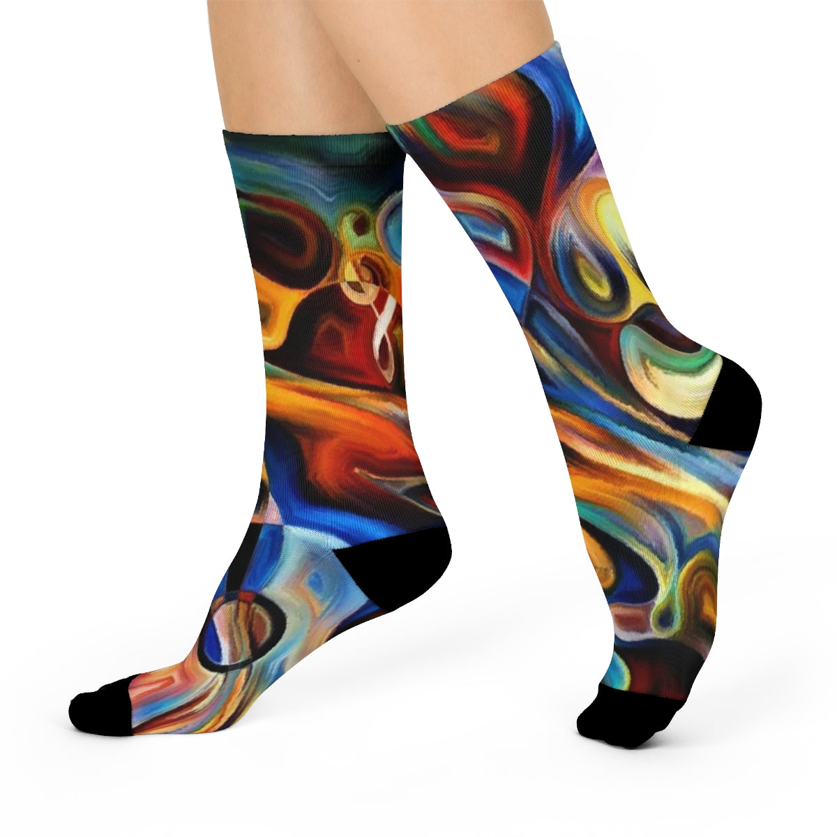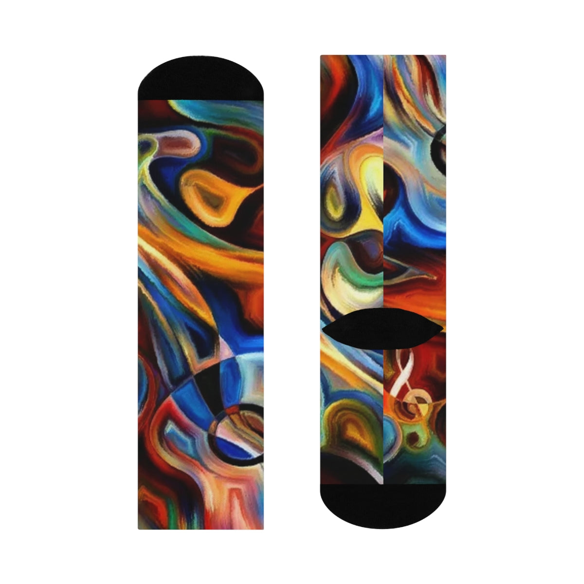 Direct-to-garment socks are a one-size-fits-all solution up to a men’s size 12. The base color is white with black on the toes and heel. The construction is 73% polyester, 18% nylon, 6% spandex, and 3% cotton. Add some foundational character with an all-over-print design; giving your customers a chance to style-up their footwear.