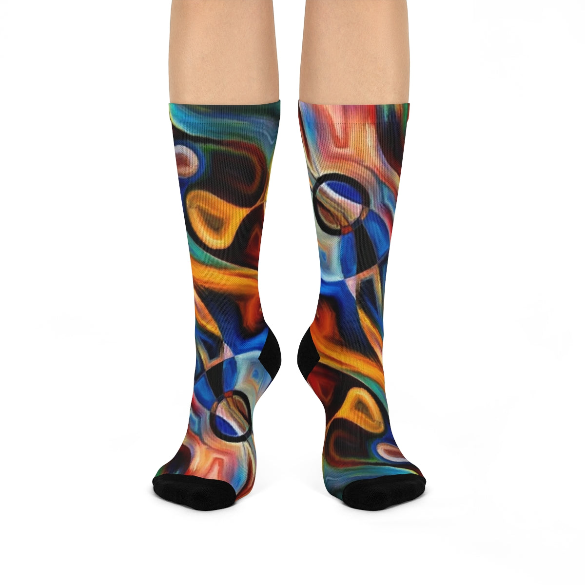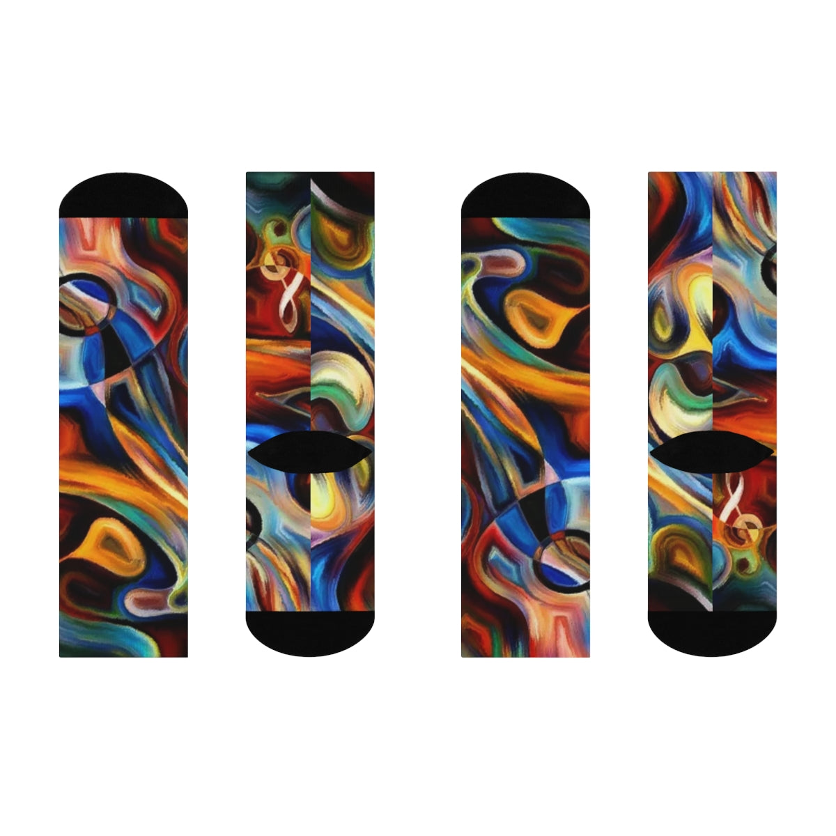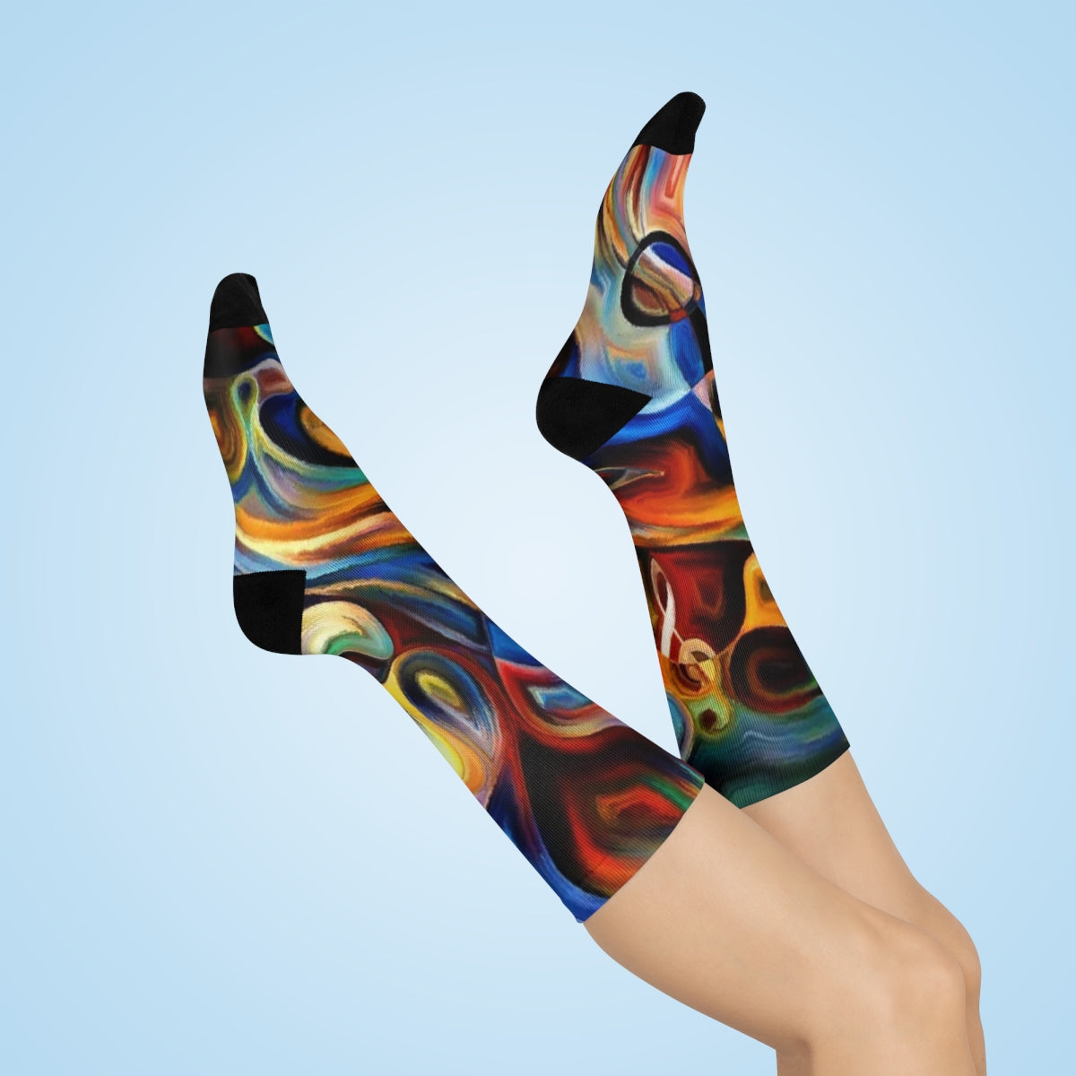 Direct-to-garment socks are a one-size-fits-all solution up to a men’s size 12. The base color is white with black on the toes and heel. The construction is 73% polyester, 18% nylon, 6% spandex, and 3% cotton. Add some foundational character with an all-over-print design; giving your customers a chance to style-up their footwear.