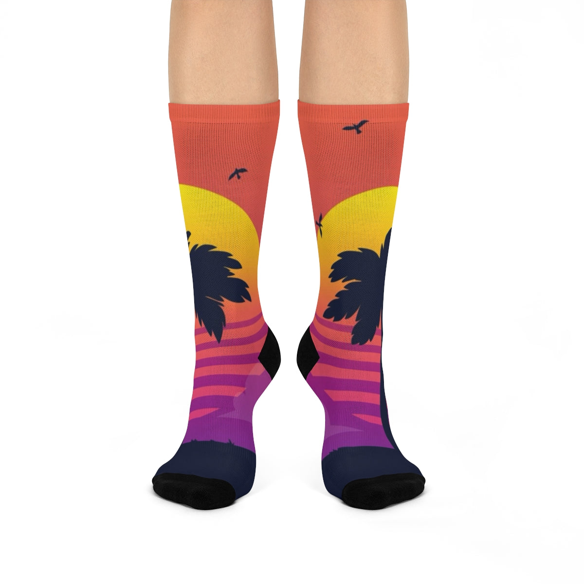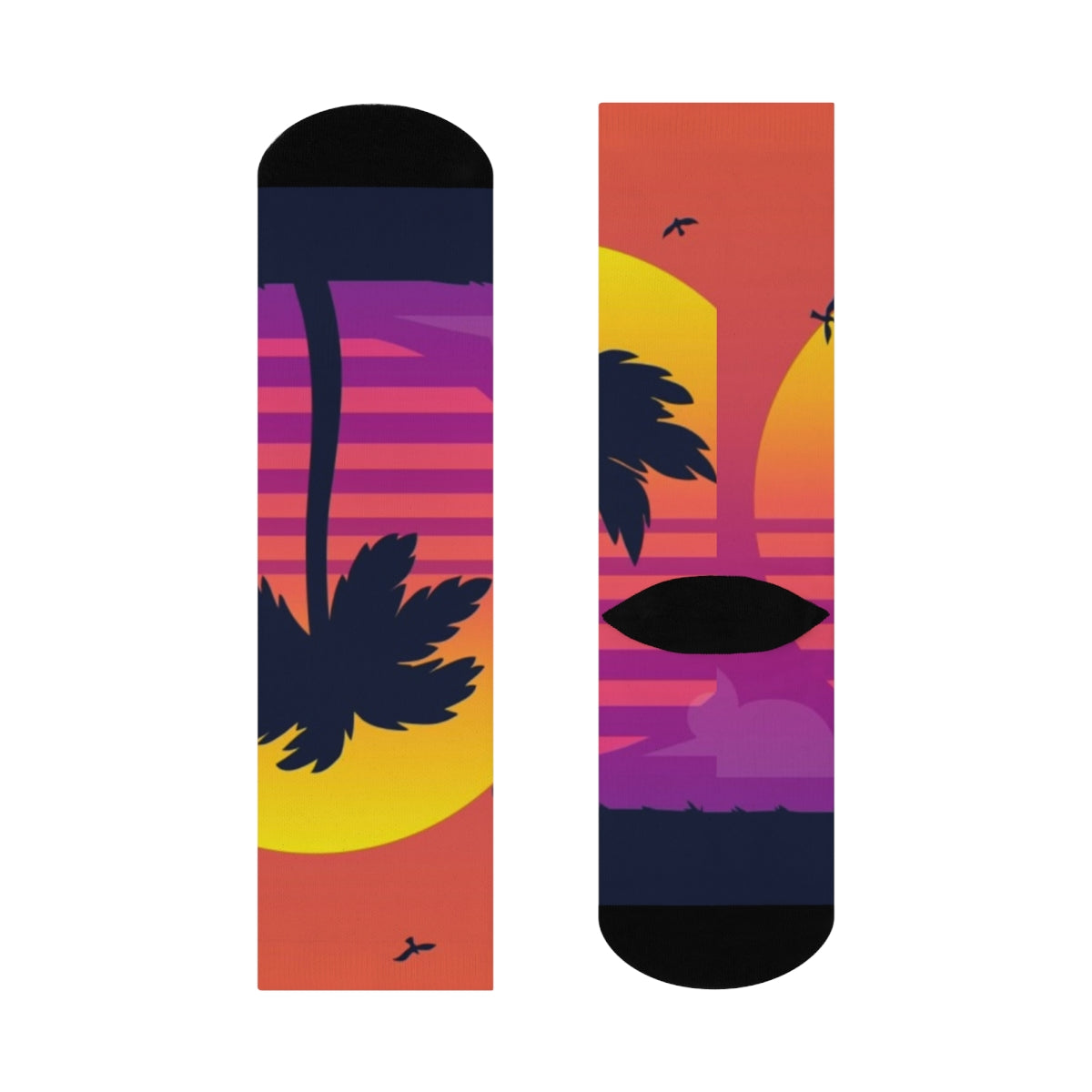 Direct-to-garment socks are a one-size-fits-all solution up to a men’s size 12. The base color is white with black on the toes and heel. The construction is 73% polyester, 18% nylon, 6% spandex, and 3% cotton. Add some foundational character with an all-over-print design; giving your customers a chance to style-up their footwear.